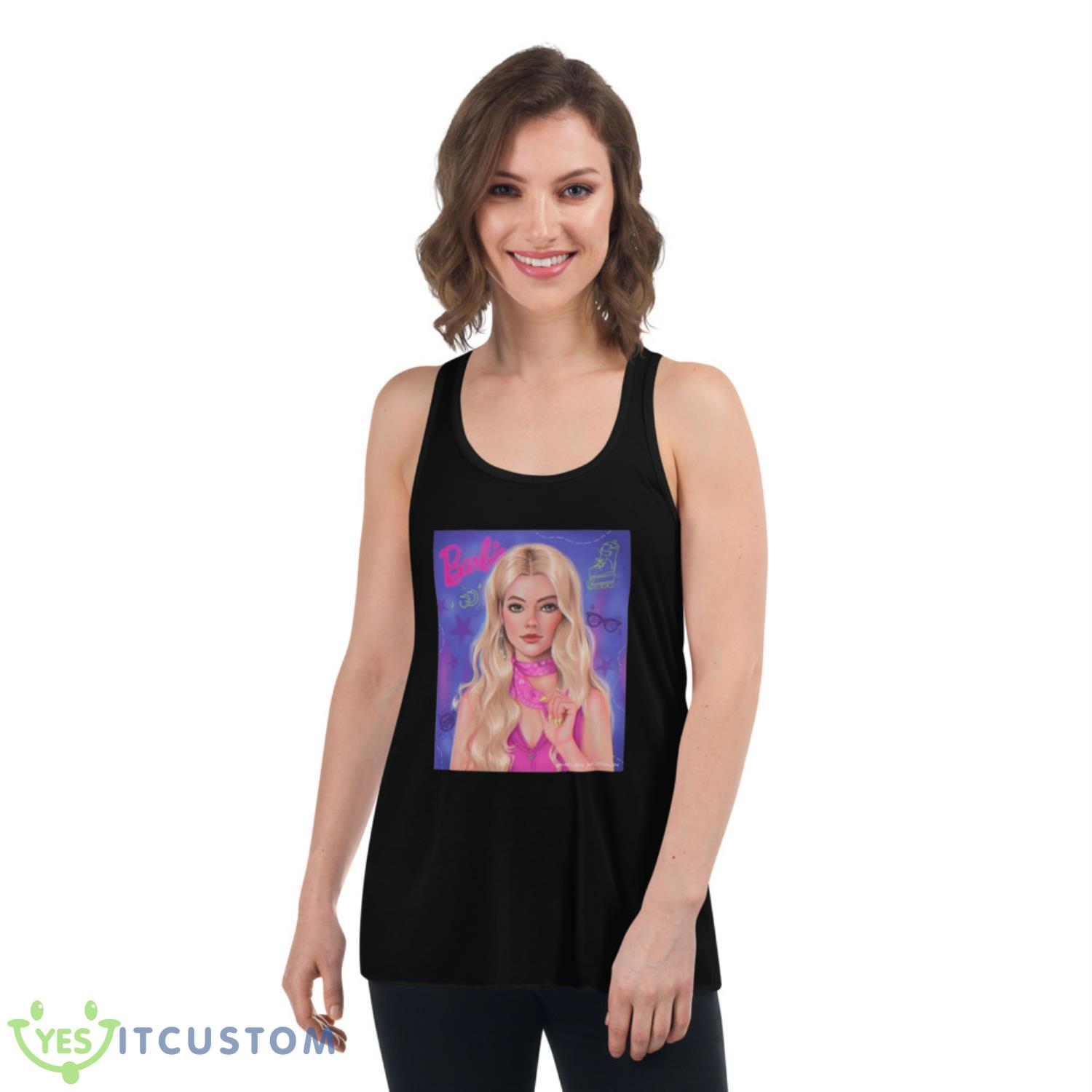 Crafted with meticulous attention to detail, this shirt showcases a unique digital design that captures the essence of both Barbie’s iconic style and Margot Robbie’s modern elegance. The vibrant colors, intricate patterns, and captivating graphics make it a true fashion masterpiece, perfect for making a bold statement wherever you go.