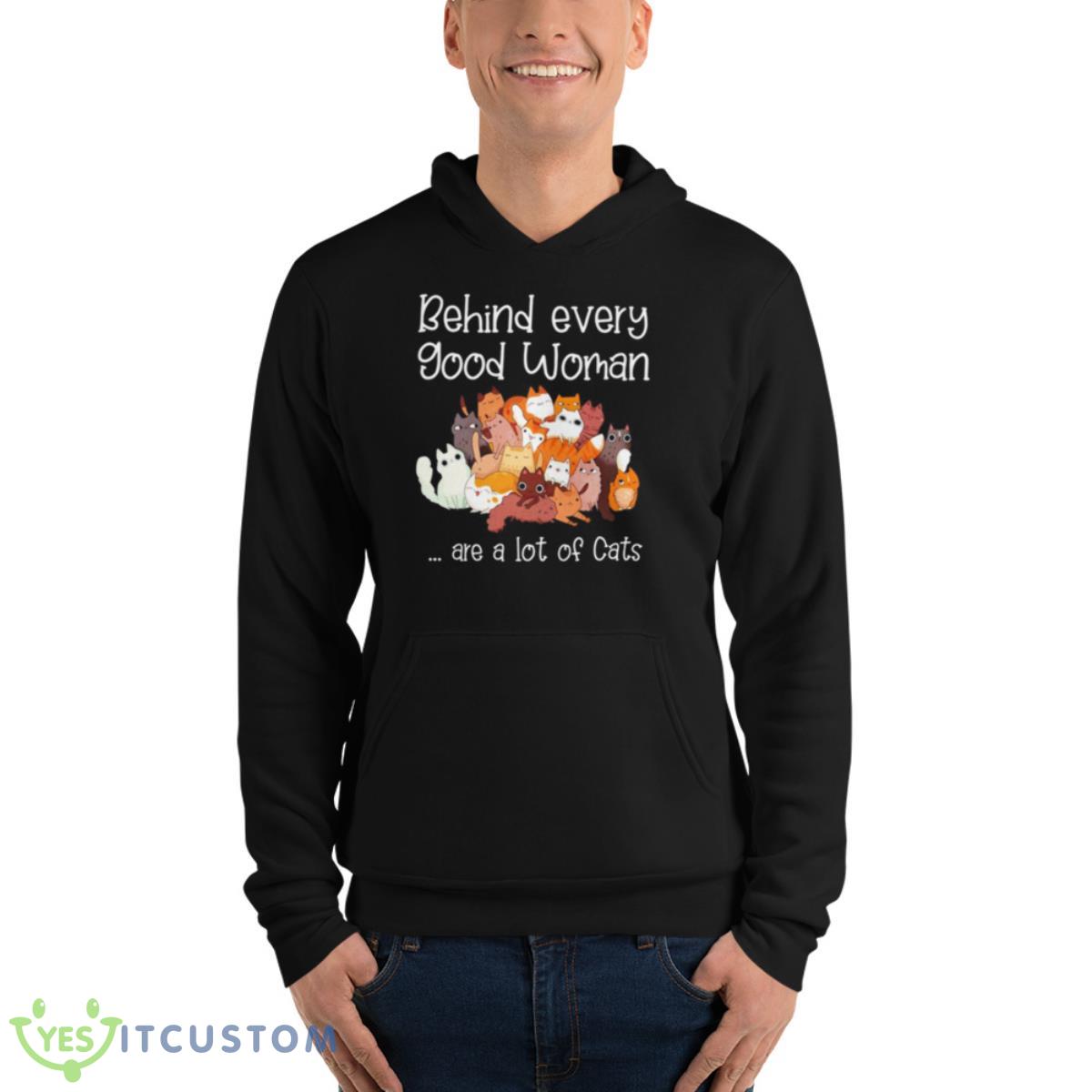Looking for the purrfect addition to your wardrobe? Look no further than our Behind Every Good Woman Are A Lot Of Cats Shirt!