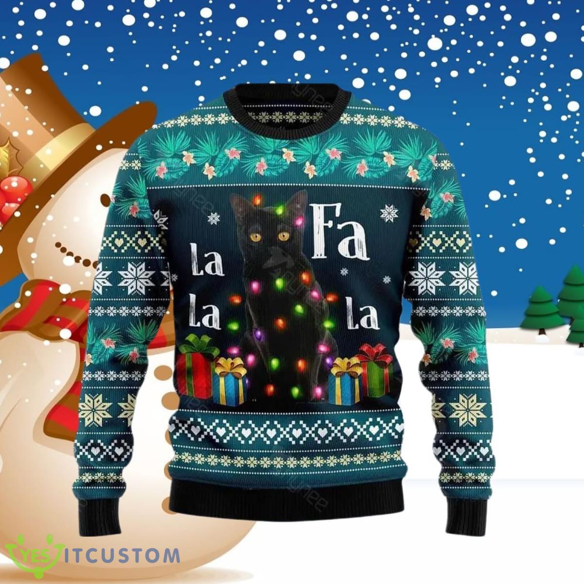 Some of the Black Cat Falalala Ugly Christmas Sweater Gift For Men And Women photos