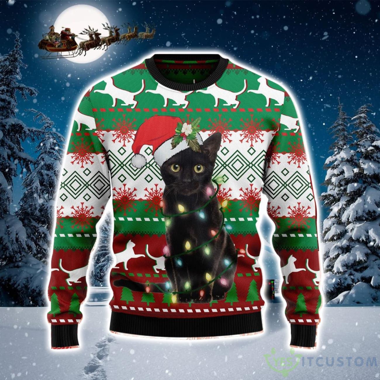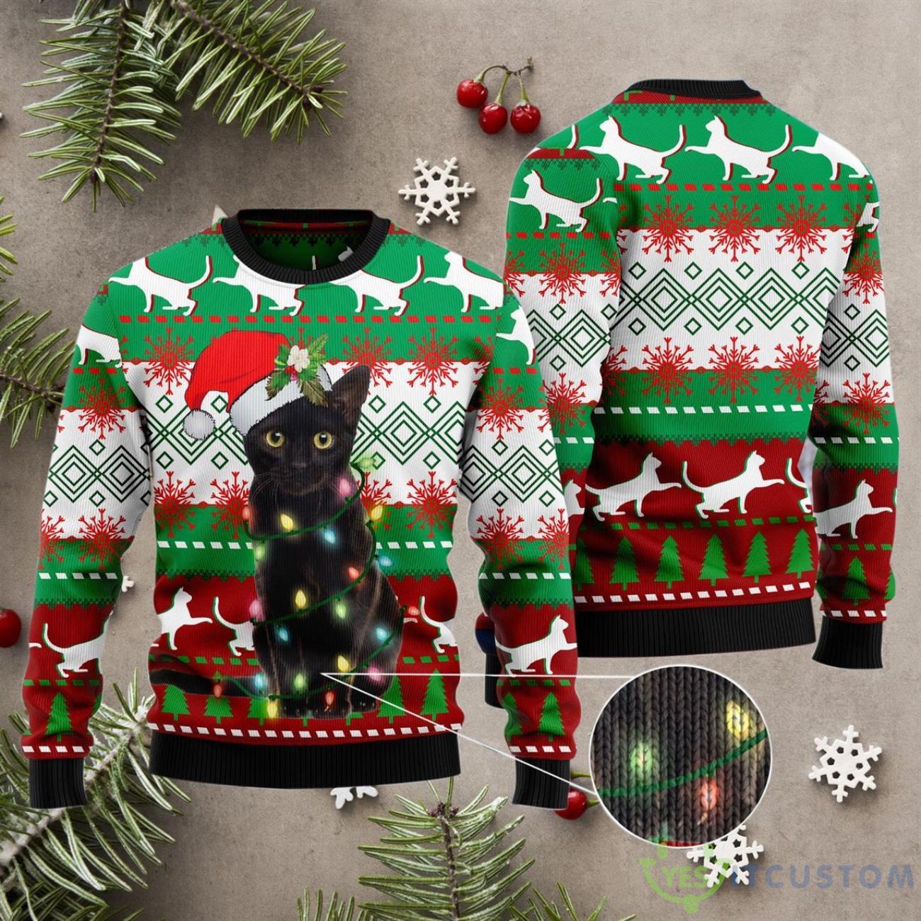 Some of the Black Cat Light AOP Christmas Sweater photos