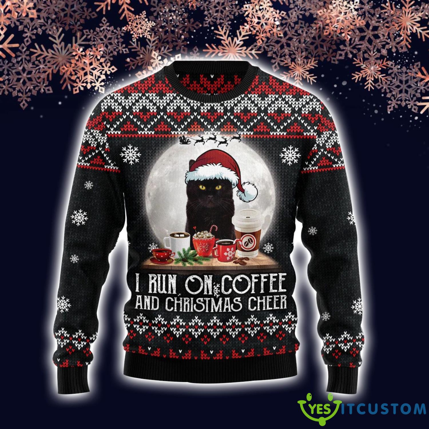 Black Cat Run On Coffee Funny Christmas Gift Xmas Ugly Christmas Sweater Informations: