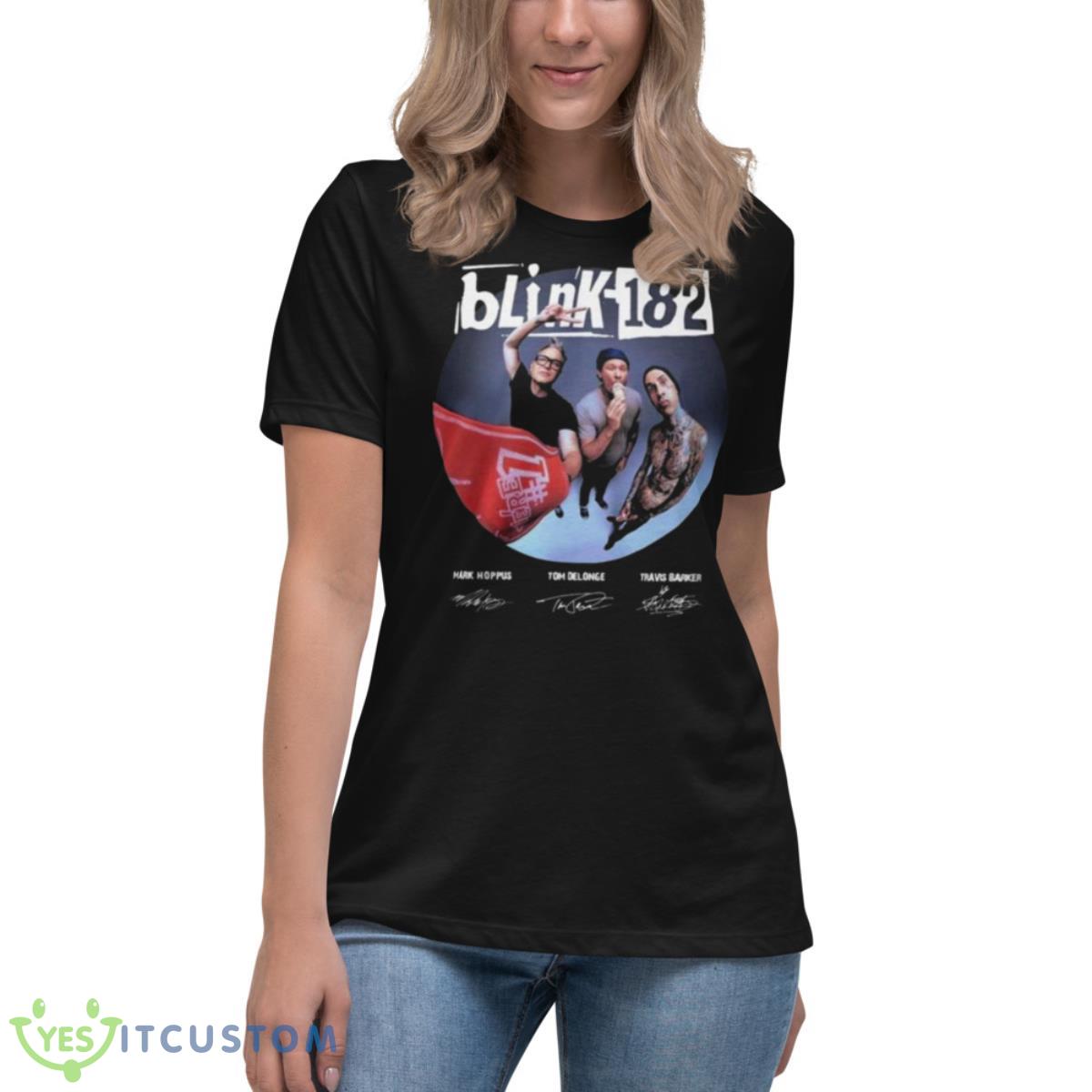 Some of the Blink 182 Mark Hoppus Tom Delonge Travis Barker World Tour 2023 Signatures Shirt photos