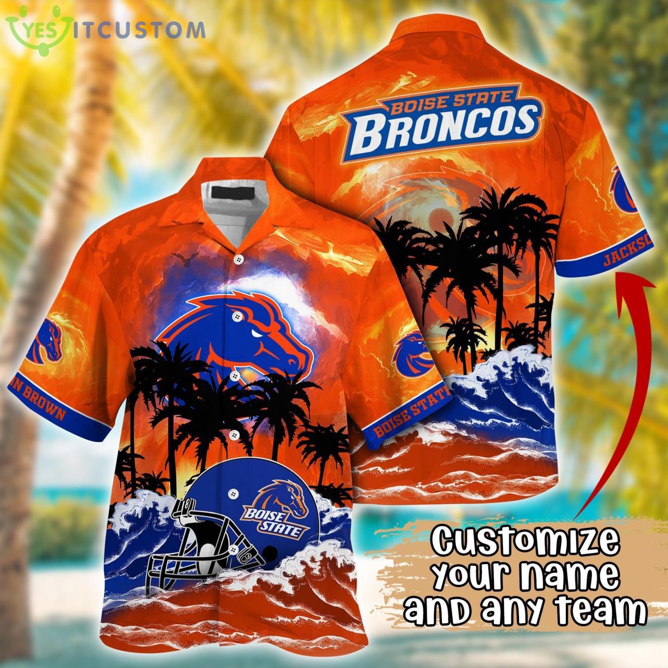 Some of the Boise State Broncos NCAA Team Logo Custom Name 3D Hawaiian Shirt Gift Ideas photos
