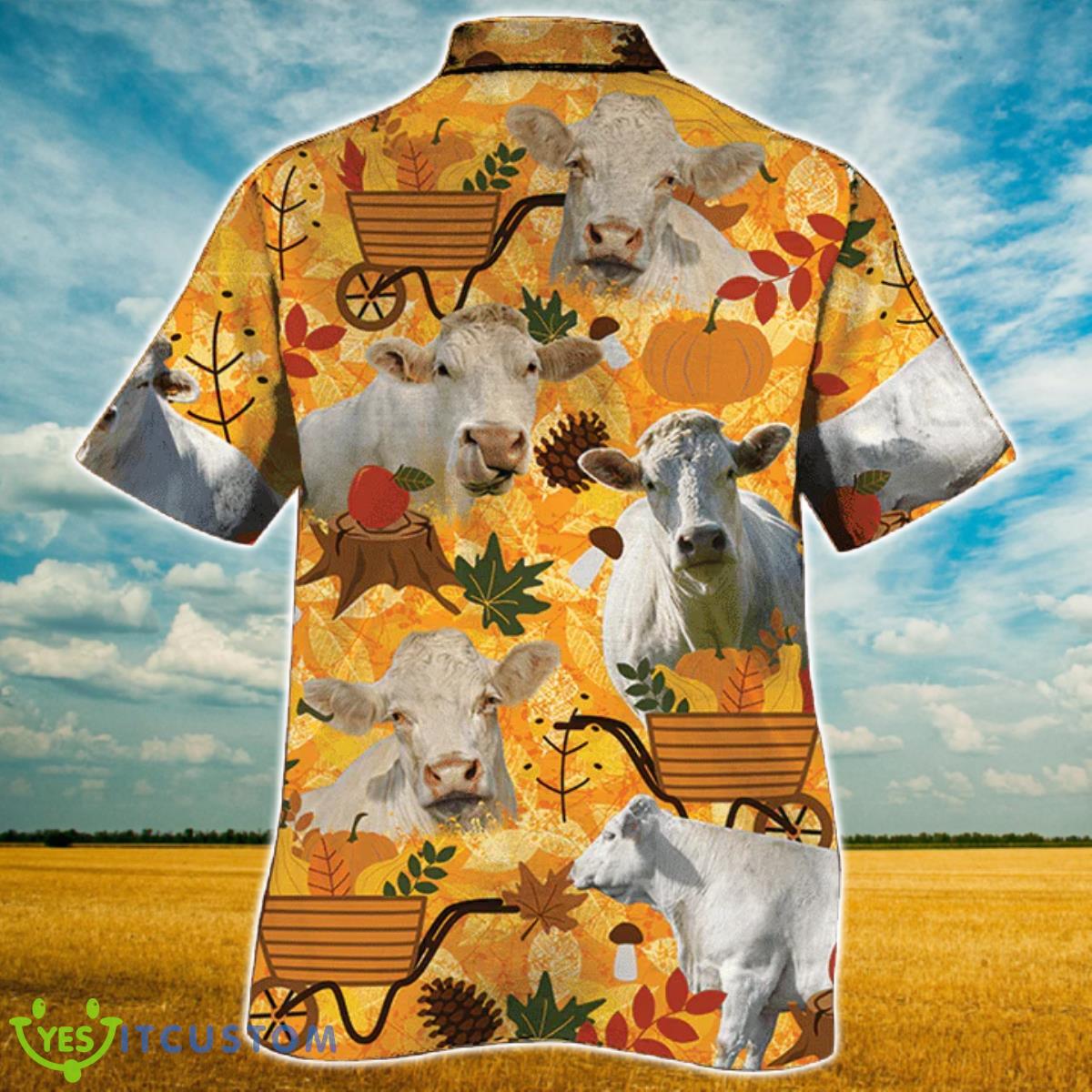 Charolais Cattle Lovers Orange Nature Autumn Hawaiian Shirt Details: