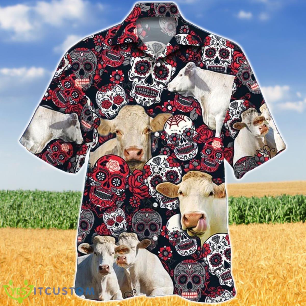 The Charolais Cattle Lovers Sugar Skull Floral Hawaiian Shirt effortlessly showcases your love for both bohemian style and the majestic Charolais cattle breed. The intricate sugar skull print, adorned with colorful flowers, adds a unique and eye-catching touch to this trendy shirt.