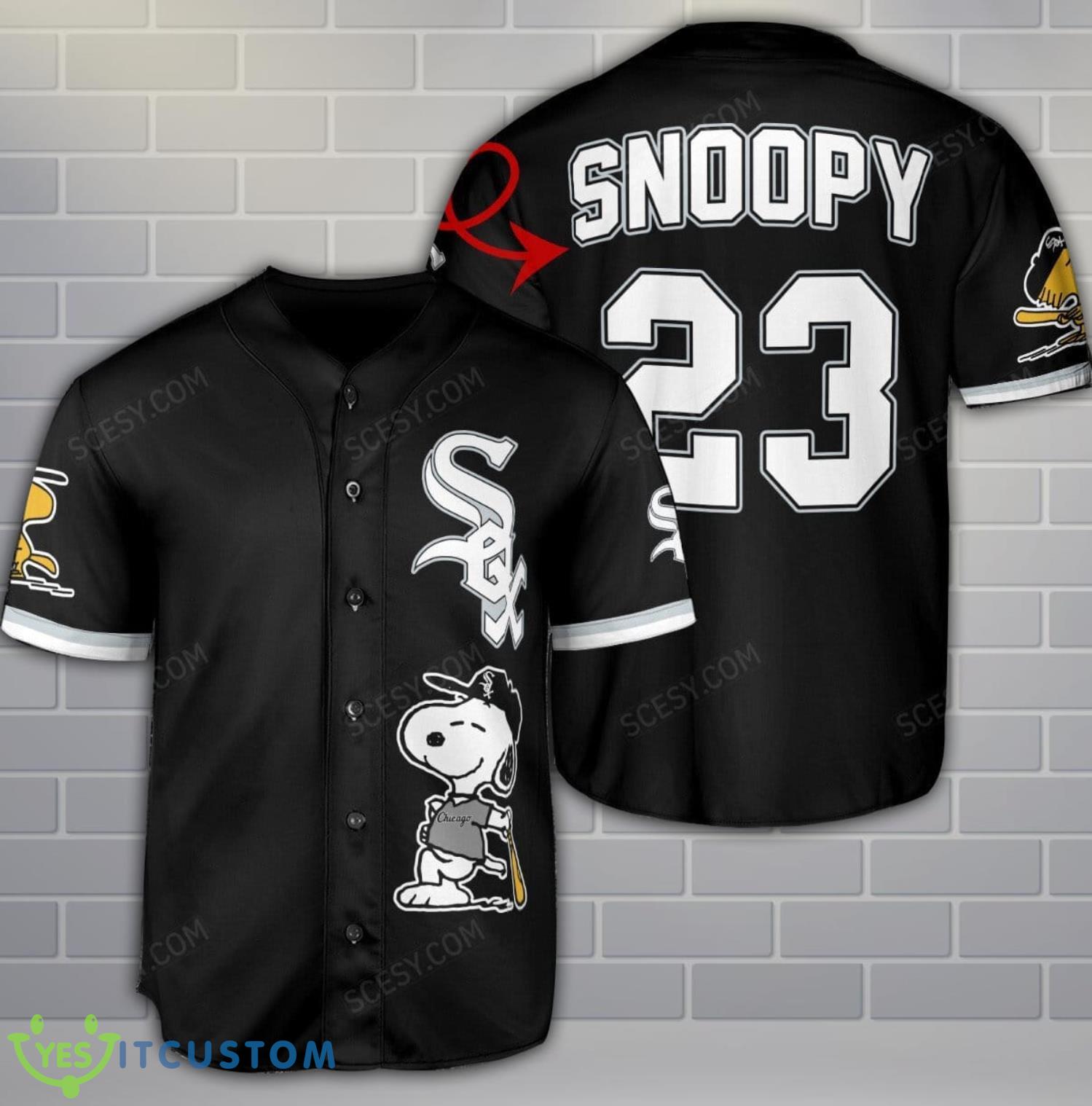 Chicago White Sox Peanuts Snoopy x Chicago White Sox Baseball Jersey Shirt Black Custom Name Number Information: