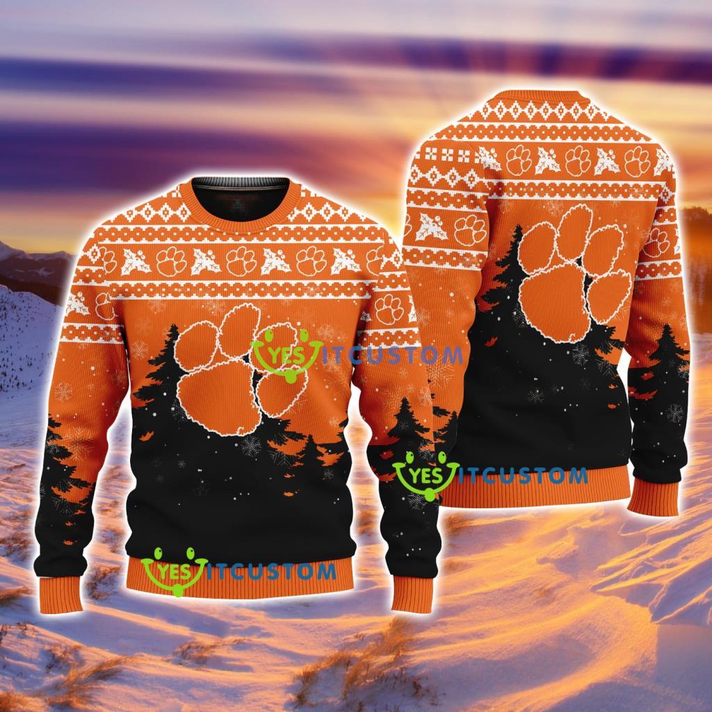 Clemson Tigers NCAA Knitting Pattern Christmas Tree Pine Happy Ugly Sweater Merry Chistmas Informations: