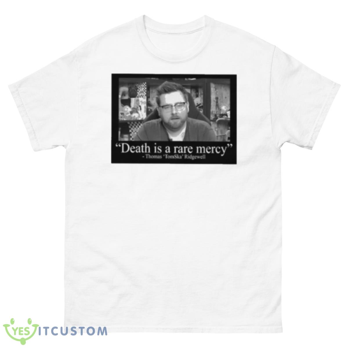 This Death Is A Rare Mercy Thomas Tomska Ridgewell Shirt was designed and Printed in the USA! Available in many styles, colors, and sizes. This could be a cute gift. This t-shirt is made of quality cotton, which makes it very comfortable to wear. Now it is available in t-shirts, hoodies, long sleeves, and tank tops. If you need the shirt in other styles, please contact us.