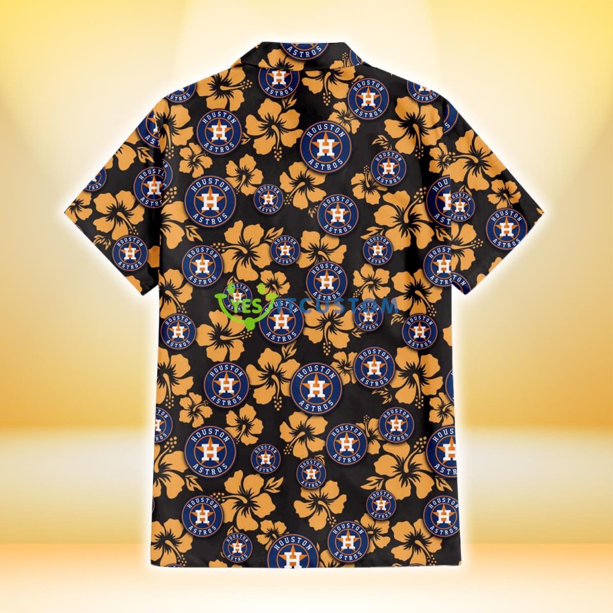 Some of the Houston Astros Tiny Yellow Hibiscus Black Background 3D Hawaiian Shirt Gift For Fans photos