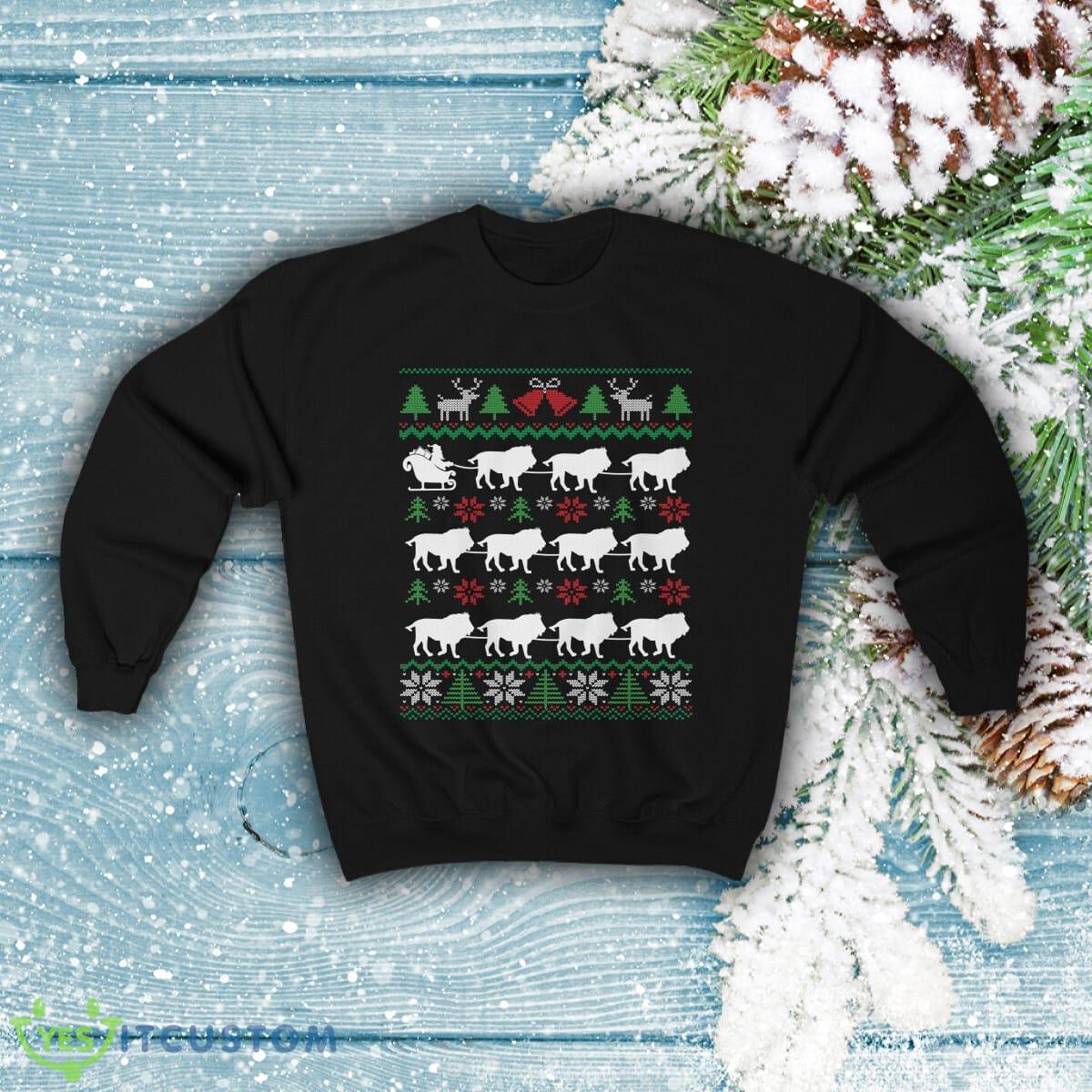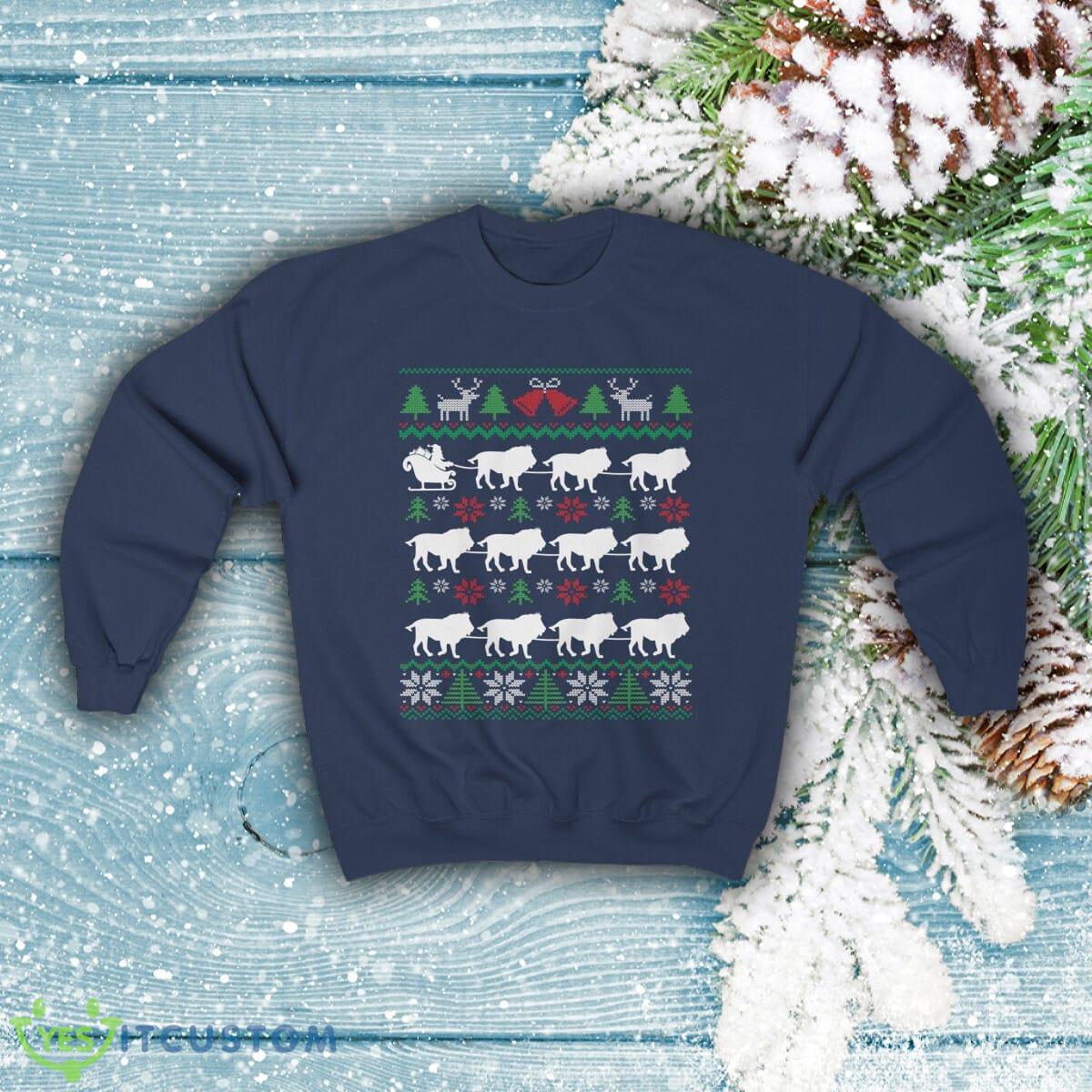 Some of the Lions Pulling Santa Sleigh Funny Lion Themed Ugly Christmas Sweatshirt photos