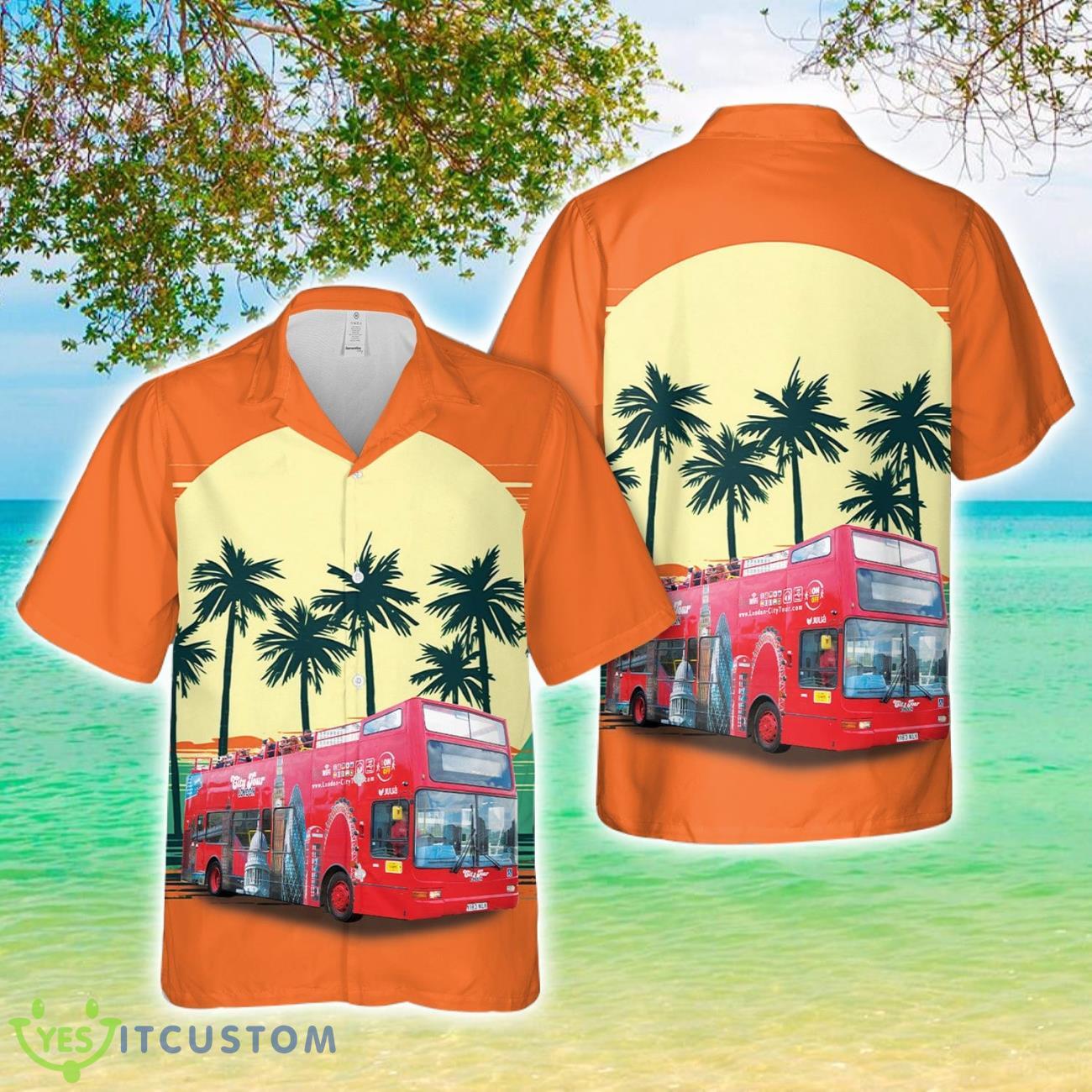 London Open Top Bus Hawaiian Shirt 3D Printed Beach Lover Gift Details: