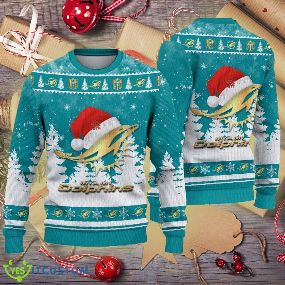 Miami Dolphins Logo Golden Fans Santa Hat Tree Knitted Xmas Sweater Informations: