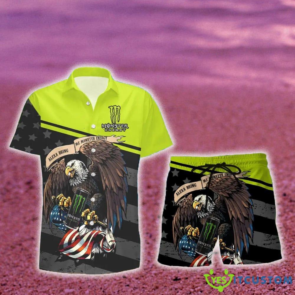 Monster Energy Eagle American Flag Gift Hawaiian Set Shirt And Short Summer Beach Details: