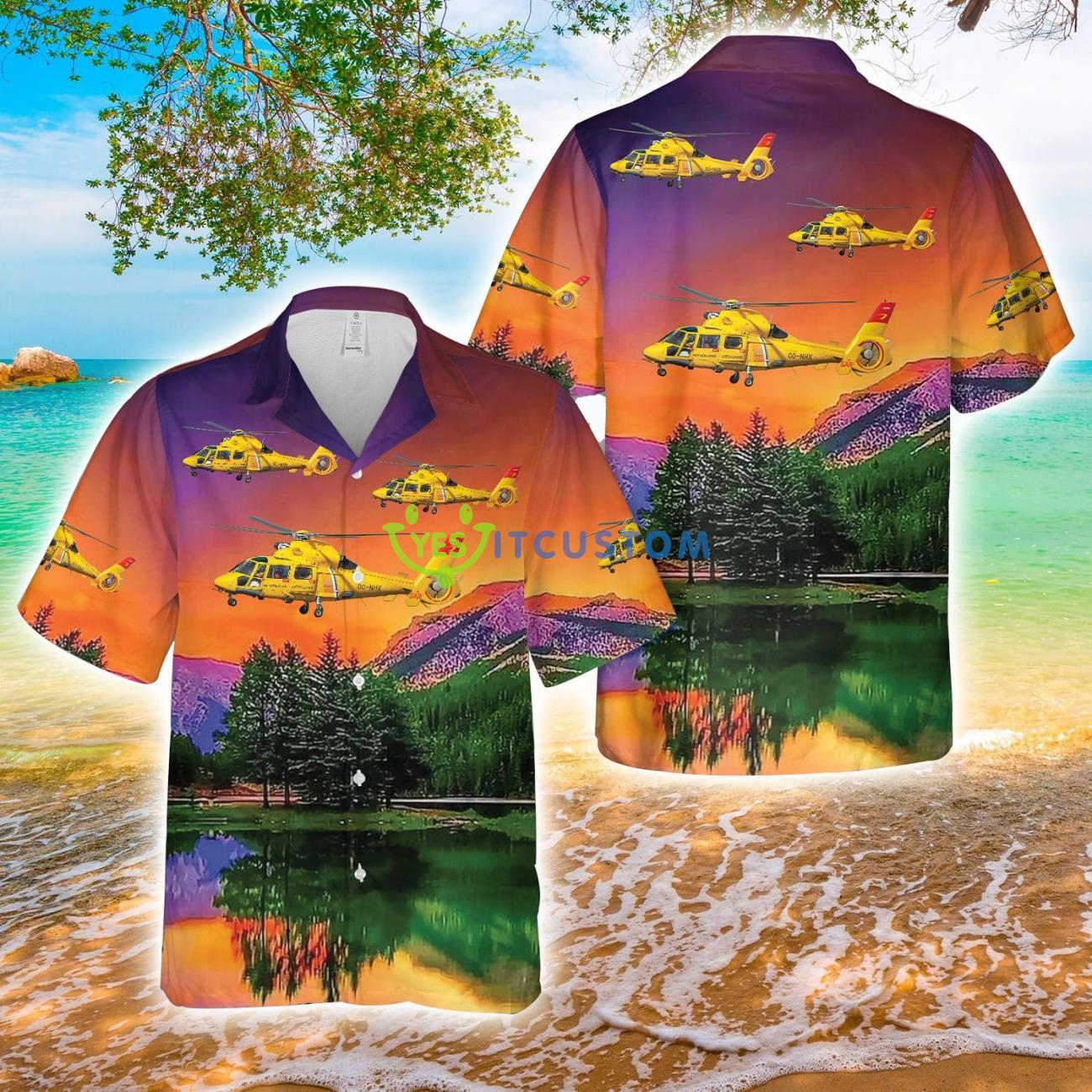Netherlands Coast Guard Aérospatiale SA 365N3 Dauphin 2 AOP Hawaiian Shirt Details: