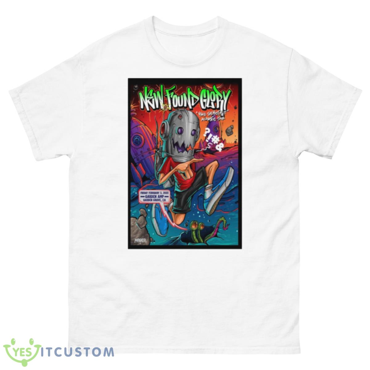 Looking for the perfect shirt to show your support for your favorite band, New Found Glory? Look no further than this New Found Glory Garden Grove Feb 3rd 2023 Shirt! This shirt is perfect for any fan of the band, and is sure to show your support for them at their next concert. The shirt is made of a high quality material, and is sure to last you through many concerts. It is also machine washable, so you can keep it looking great for years to come. Order your shirt today and be ready to show your support for New Found Glory at their next concert!
