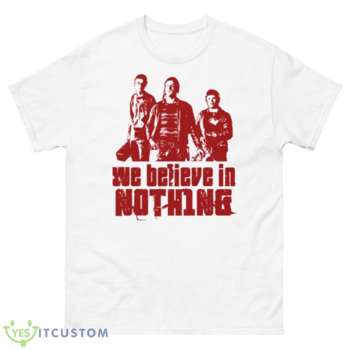 This Nihilists Believe In Nothing The Big Lebowski Shirt was designed and Printed in the USA! Available in many styles, colors, and sizes. This could be a cute gift. This t-shirt is made of quality cotton, which makes it very comfortable to wear. Now it is available in t-shirts, hoodies, long sleeves, and tank tops. If you need the shirt in other styles, please contact us.