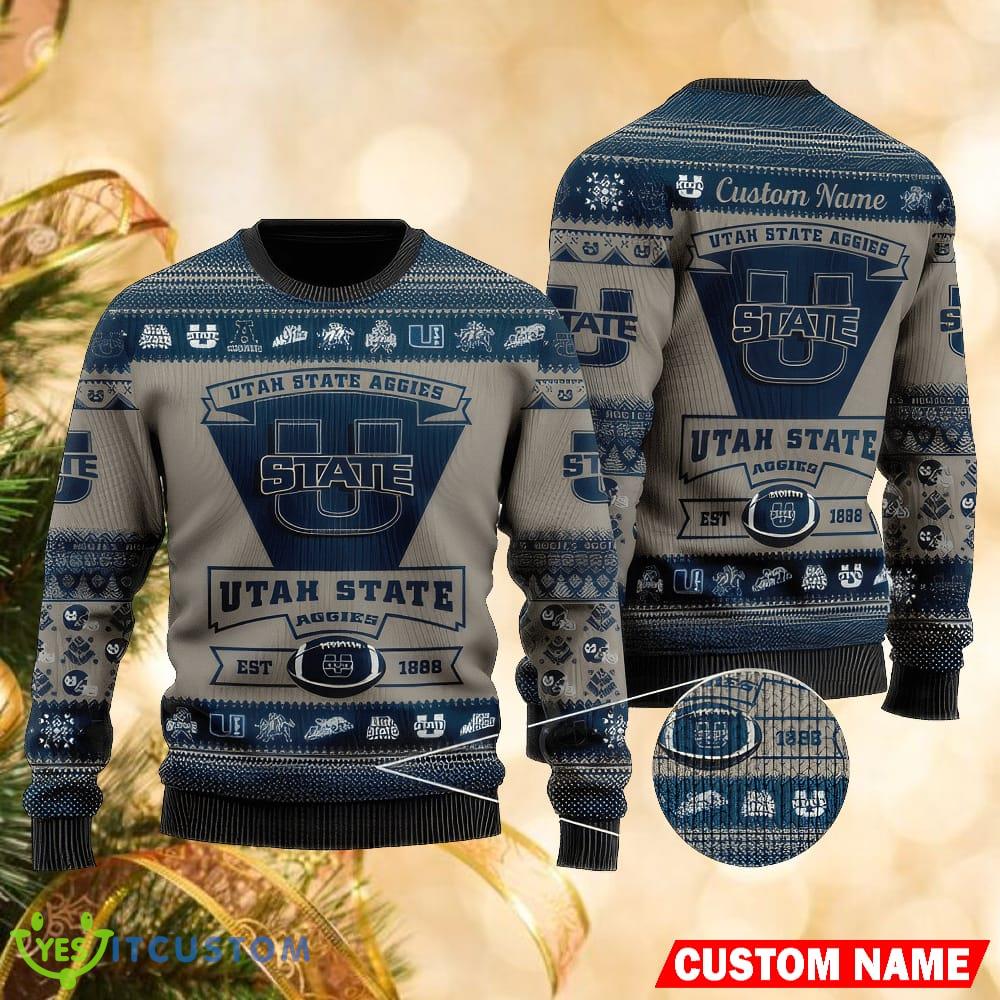 Personalized Utah State Aggies Football Team Logo Unisex Christmas Knitted Sweater Details: