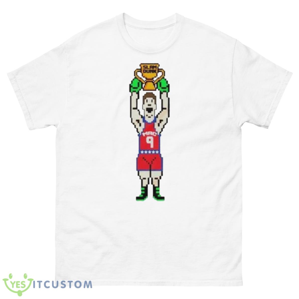 This shirt is perfect for any Philadelphia 76ers fan. It features Mac McClung in a dunking pose with the text “Slam Dunk Champ” beneath him. This shirt is sure to show your love for the Philadelphia 76ers and Mac McClung.