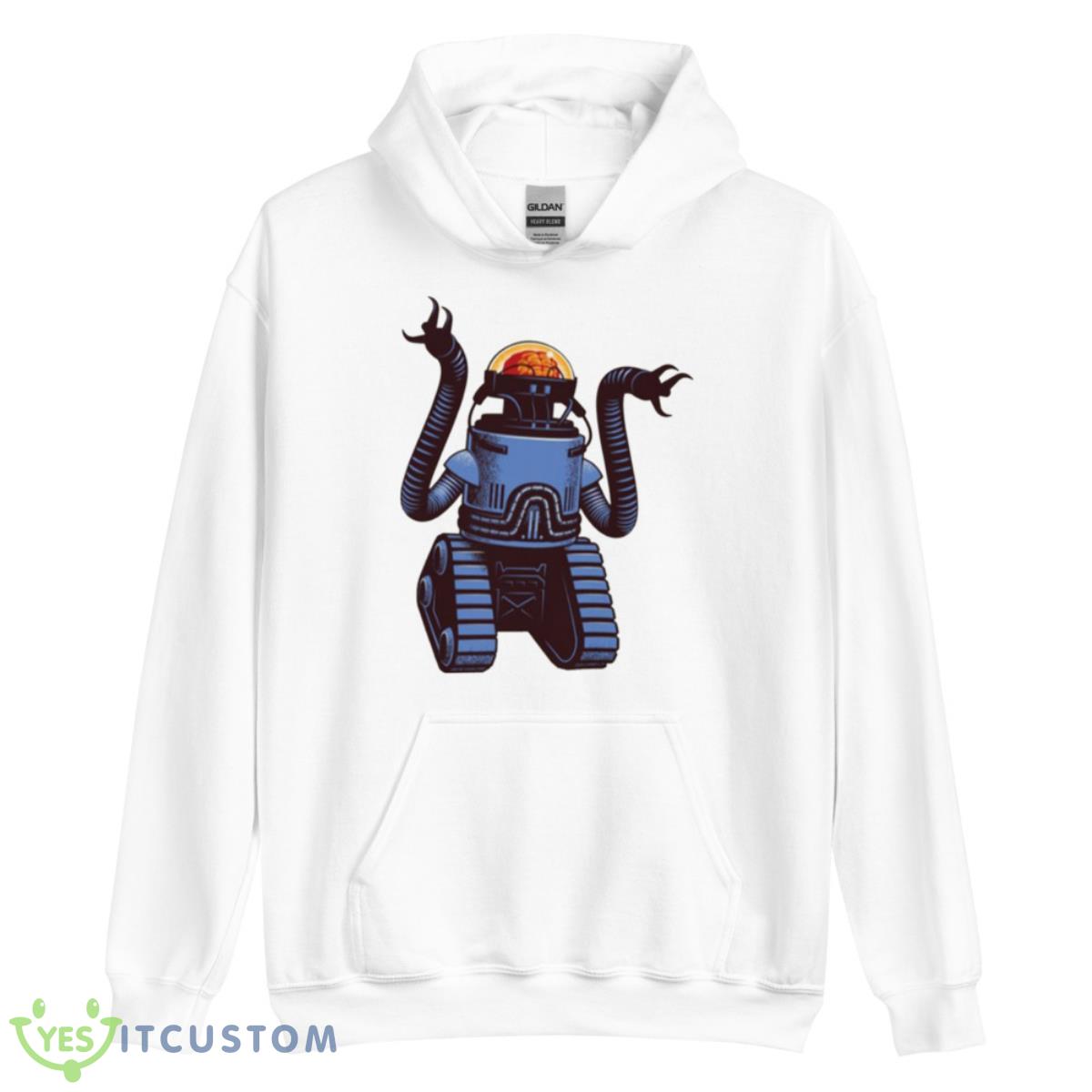 This shirt features an image of the robobrain character from the Fallout video game series. The shirt is made of 100% cotton and is available in sizes S-XXL.