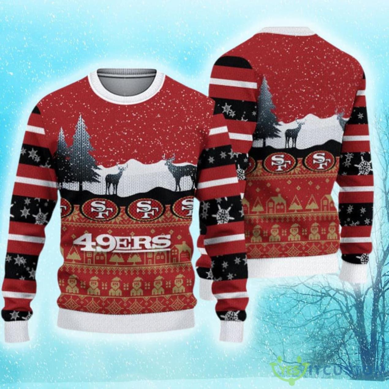 Get into the festive spirit with our San Francisco 49ers Christmas Reindeers Pattern Limited Edition Ugly Sweater. Embrace the holiday season while showcasing your undying support for your favorite football team. This exquisitely designed sweater features a unique reindeer pattern, combining the iconic San Francisco 49ers logo with classic Christmas elements. Crafted with the utmost attention to detail, this limited edition sweater is a must-have for any true fan. Made from premium quality materials, it ensures optimal comfort and durability. Whether you’re attending a holiday party, watching the game from home, or simply spreading cheer, our San Francisco 49ers Christmas Reindeers Pattern Limited Edition Ugly Sweater is the perfect choice. Grab yours today and make a bold statement this holiday season!