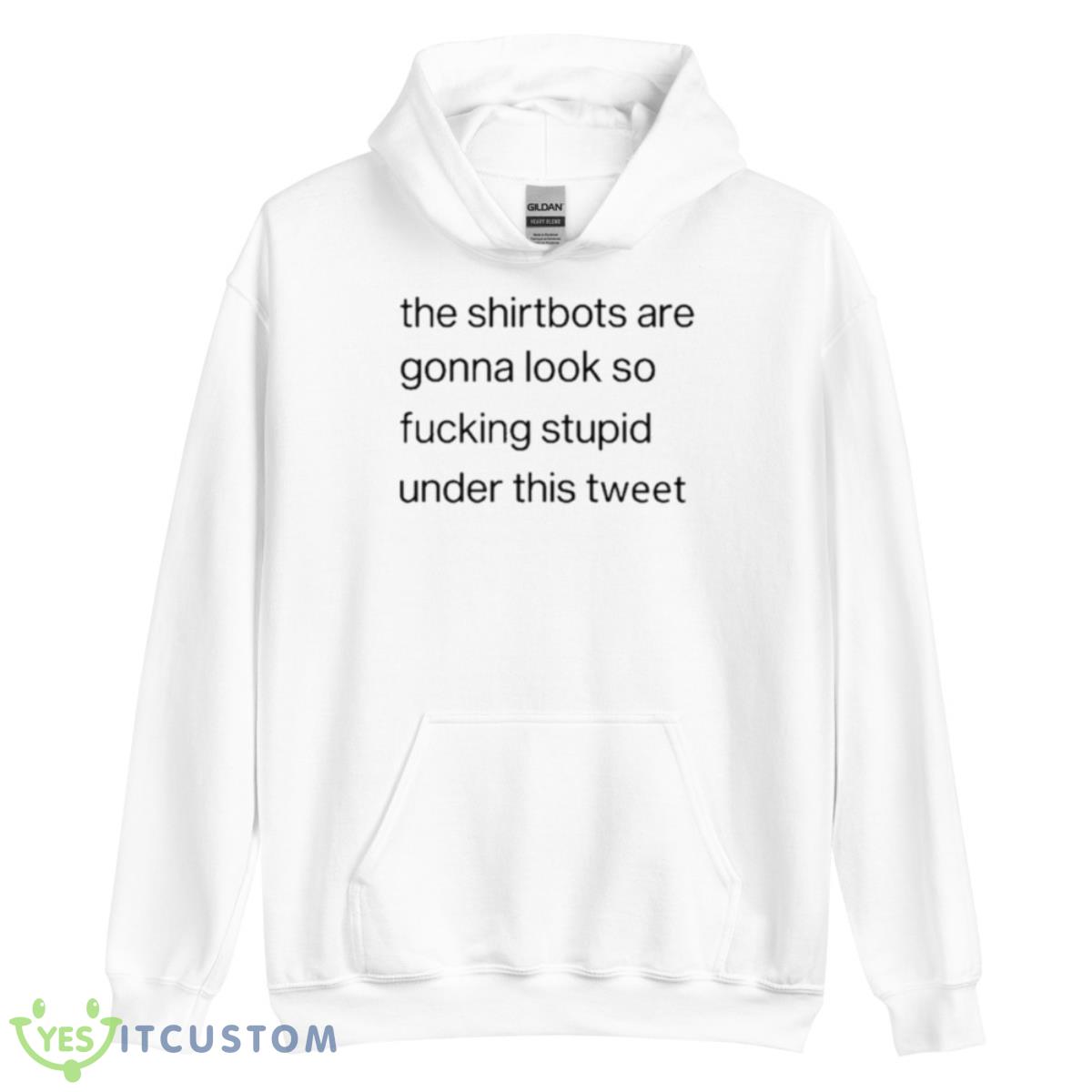 This The Shirtbots Are Gonna Look So Fucking Stupid Under This Tweet Shirt was designed and Printed in the USA! Available in many styles, colors, and sizes. This could be a cute gift. This t-shirt is made of quality cotton, which makes it very comfortable to wear. Now it is available in t-shirts, hoodies, long sleeves, and tank tops. If you need the shirt in other styles, please contact us.