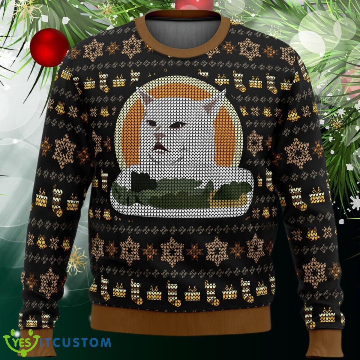 Don’t miss the opportunity to add a touch of humor and style to your Christmas celebrations. Order our Woman Yelling At Cat Meme Ugly Christmas Sweater today and be the life of the party!